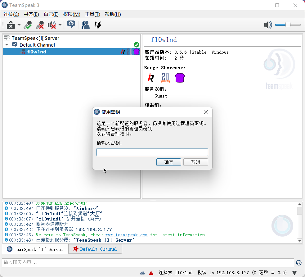 随后即可获得管理员权限,在客户端管理 Teamspeak